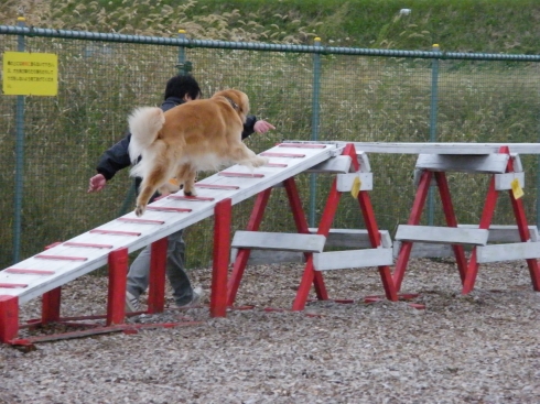 グッシーさんは来月の競技会に向けて他のワンコが居る中でどこまで出来るかを試そうと参加。