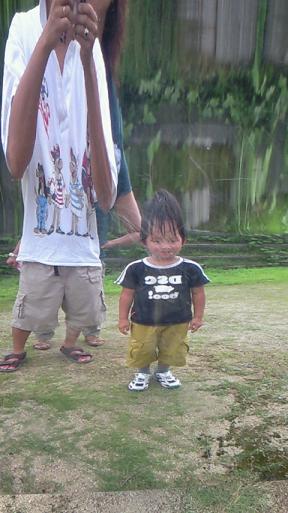 何人もの子供が近寄ってきますが恐がって手を出すことは無かったので楽々息子とブランコをして遊んだ。