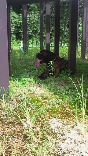 息子がブランコをしたいと言うのでグッシーはブランコの横で休止です。