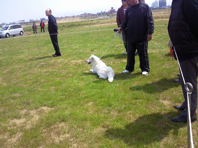 さながら田んぼのような東の河川敷ではPD(日本警察犬協会)の審査会(ドッグショー)が行われている中、ここ北陸では雪が降る事もなく、セーターのみで河川敷に居る事が出来る暖かさの中、日本犬保存会の展覧会が行われました。