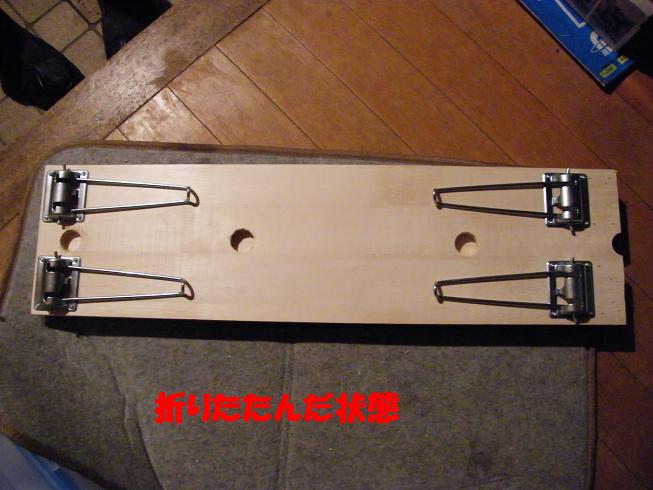 そこでなんとかならないかと考えた挙げ句、足をテーブルなどに使う折り畳み足を購入。しかし足のみは大きな物しかなくて仕方なくテーブルごと購入。