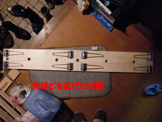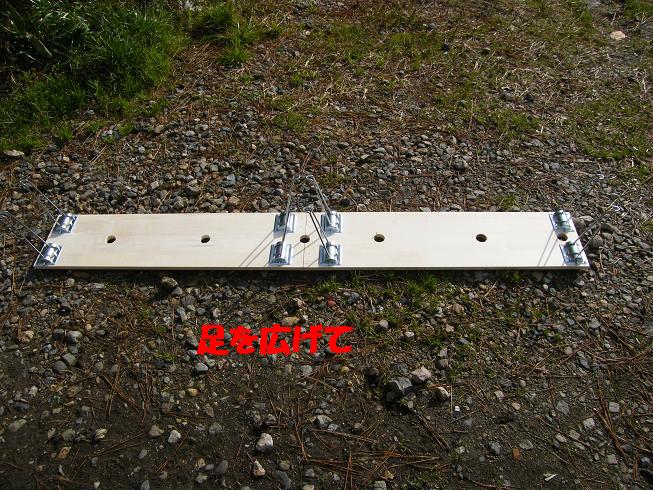 完成品は折り畳みが出来てコンパクトに収納でき、いつでも何処でも訓練が出来るような物なので足も折り畳みなので蝶番を使って切り取られたものを付けて真ん中も蝶番で繋いでさ~~と広げてみるとな~~んと真ん中の蝶番で繋いだところが垂れ下がって真っ直ぐに成らない~~!