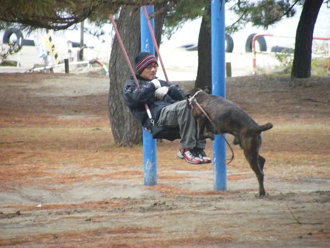 飼い主がブランコを漕ぐと嬉しそうに飛びついてくる。