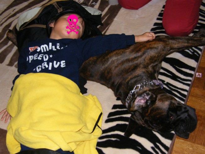帰宅後食事をしてテレビを見て息子と風呂に入りテレビを再び見ているとグッシーが息子の横でゴロリと横になった。