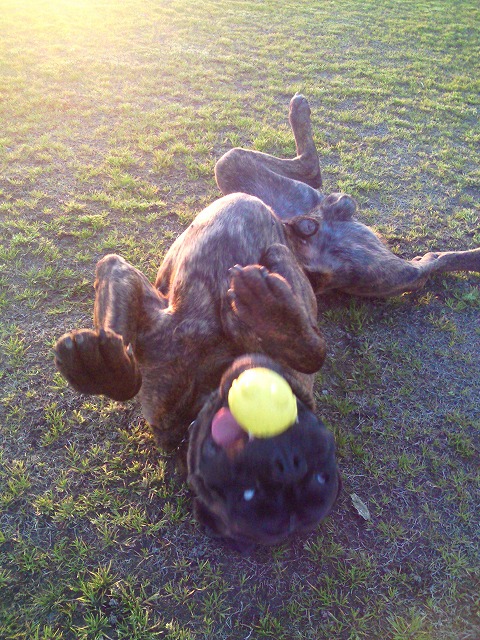 その後はボールを使っての服従訓練をしましたが、先日何処かのブログで読んだ方法を使いました。