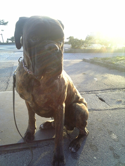 今日は長い距離の脚側。芝生で遊んでいる子供の声が気になって仕方が無い様子。