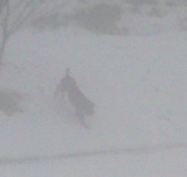 ひとしきり狩りを終えたグッシーを呼び戻すとMIXも安心したのかハーハーと言いながら雪の上に這いつくばって身体を冷やしていました。