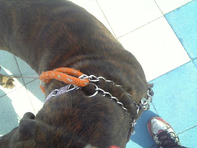 その内其れすら面倒になり考えたのが具志堅のチョークに那智黒のリードをつけると手ぶらで歩ける事に。