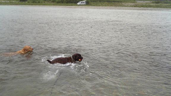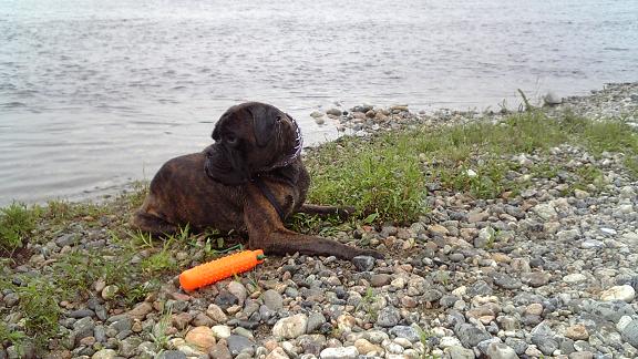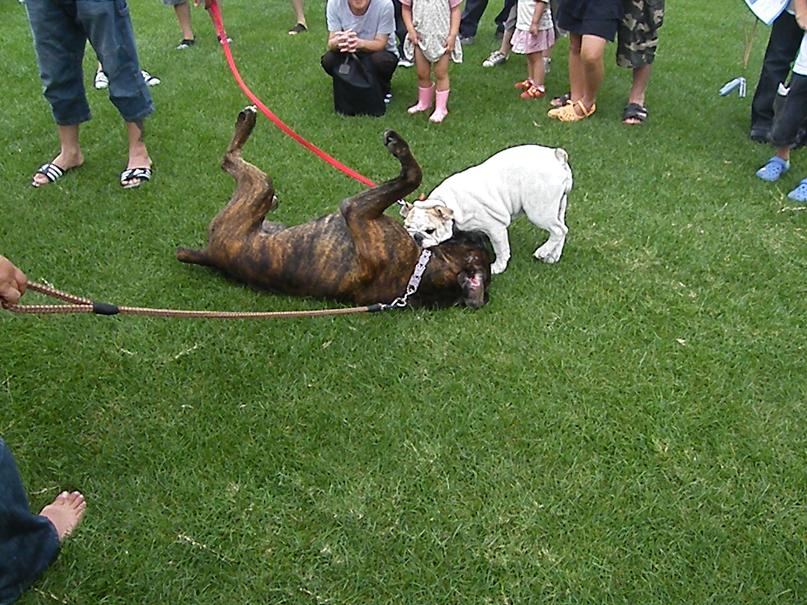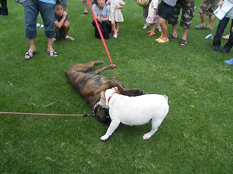 ストレス一杯のグッシーはグイグイ引っ張ってどうしようもないのでチョークを入れながらなんとか宥める。