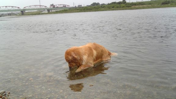 まだまだグッシーの方が大きくて堤防の向こうが見られない息子は「ダッコして~」ってさ。