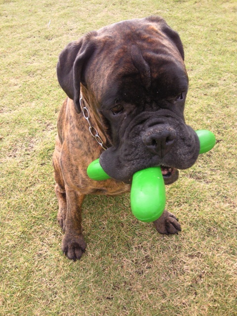 「カム!」のコマンドでそのボクサーを引きずりながらグッシーがやってくる。